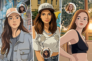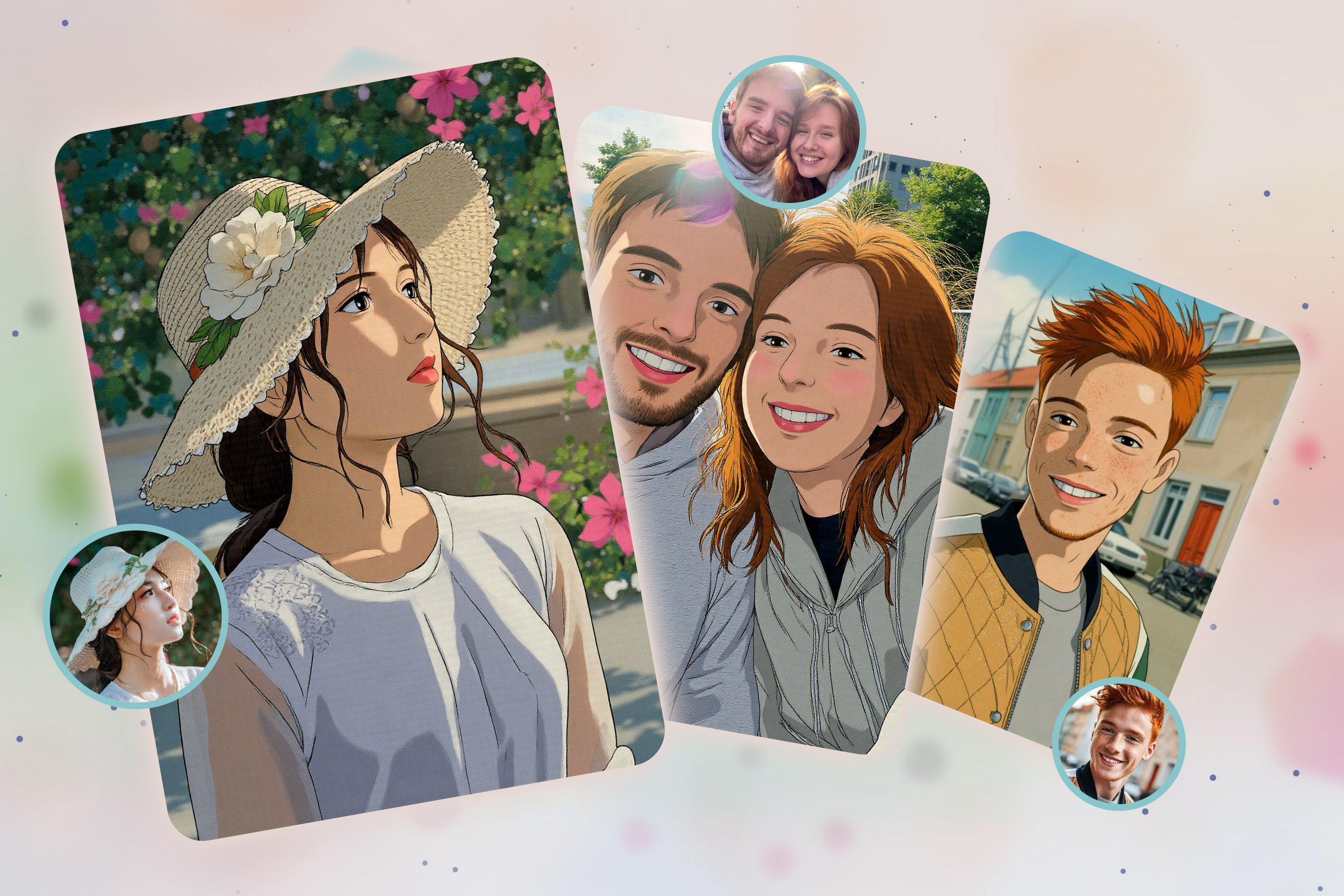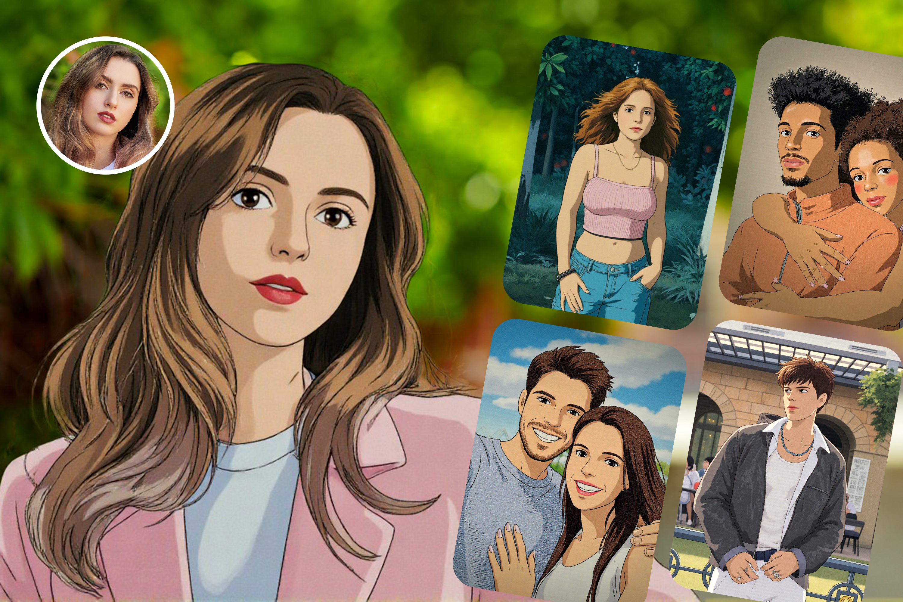 Ghibli-inspired softness and classic anime clarity. Dreamy enough to look kawaii, real enough to keep facial features recognizable.